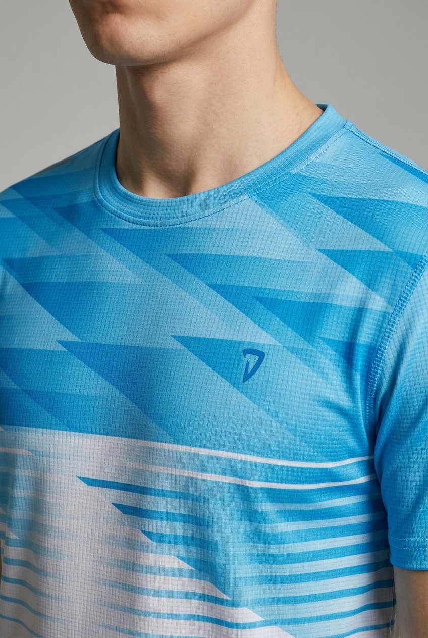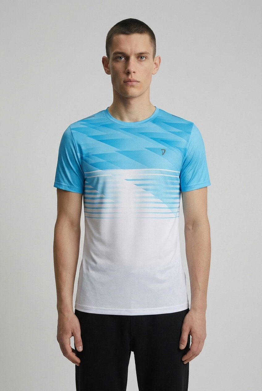 DEEDAT Men's Slim Fit T-Shirt - Blue/White