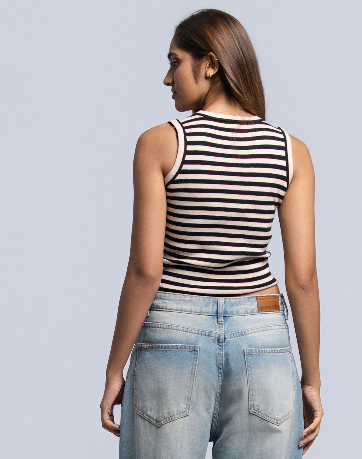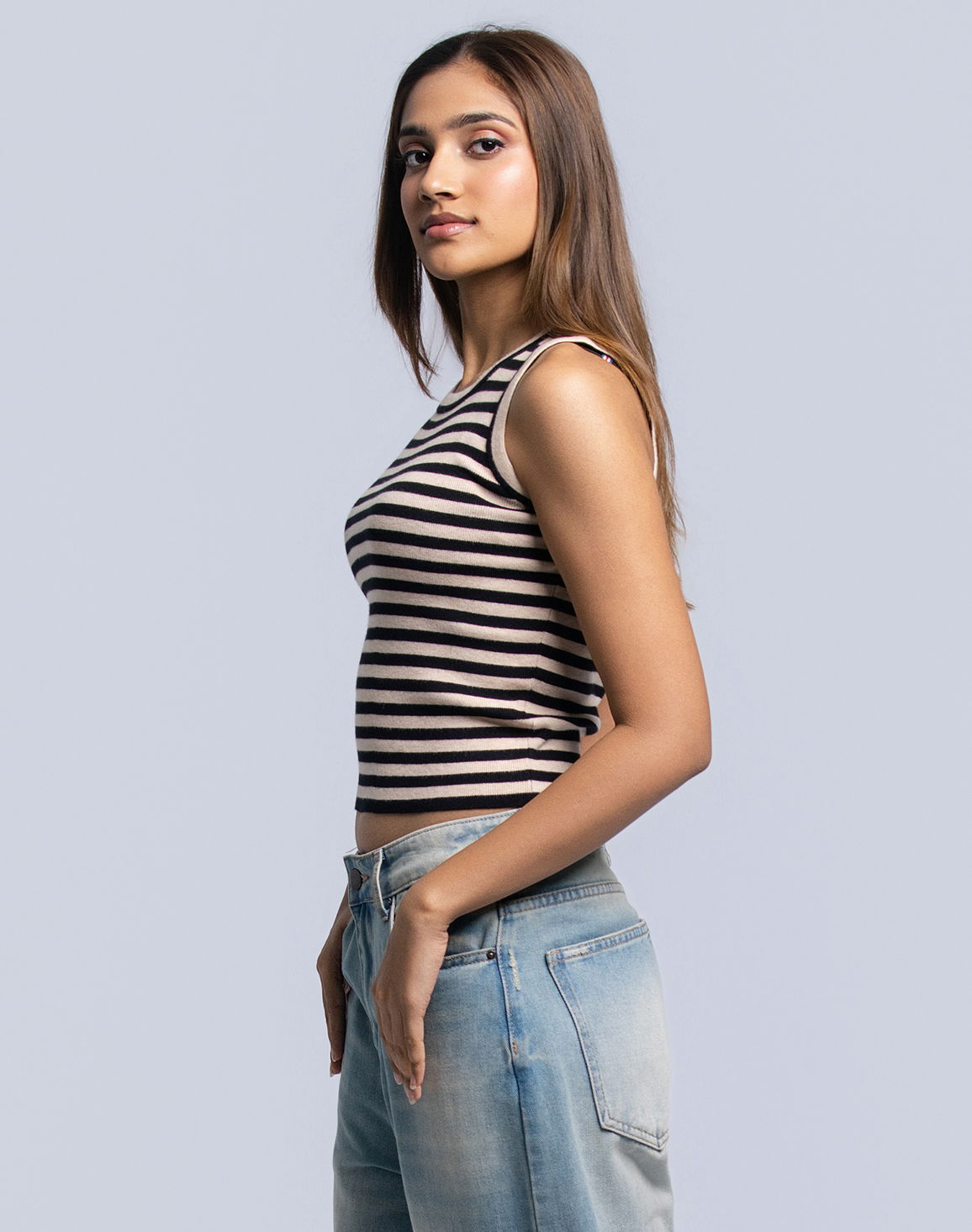 DEEDAT Women's Stripe Tank Top Beige