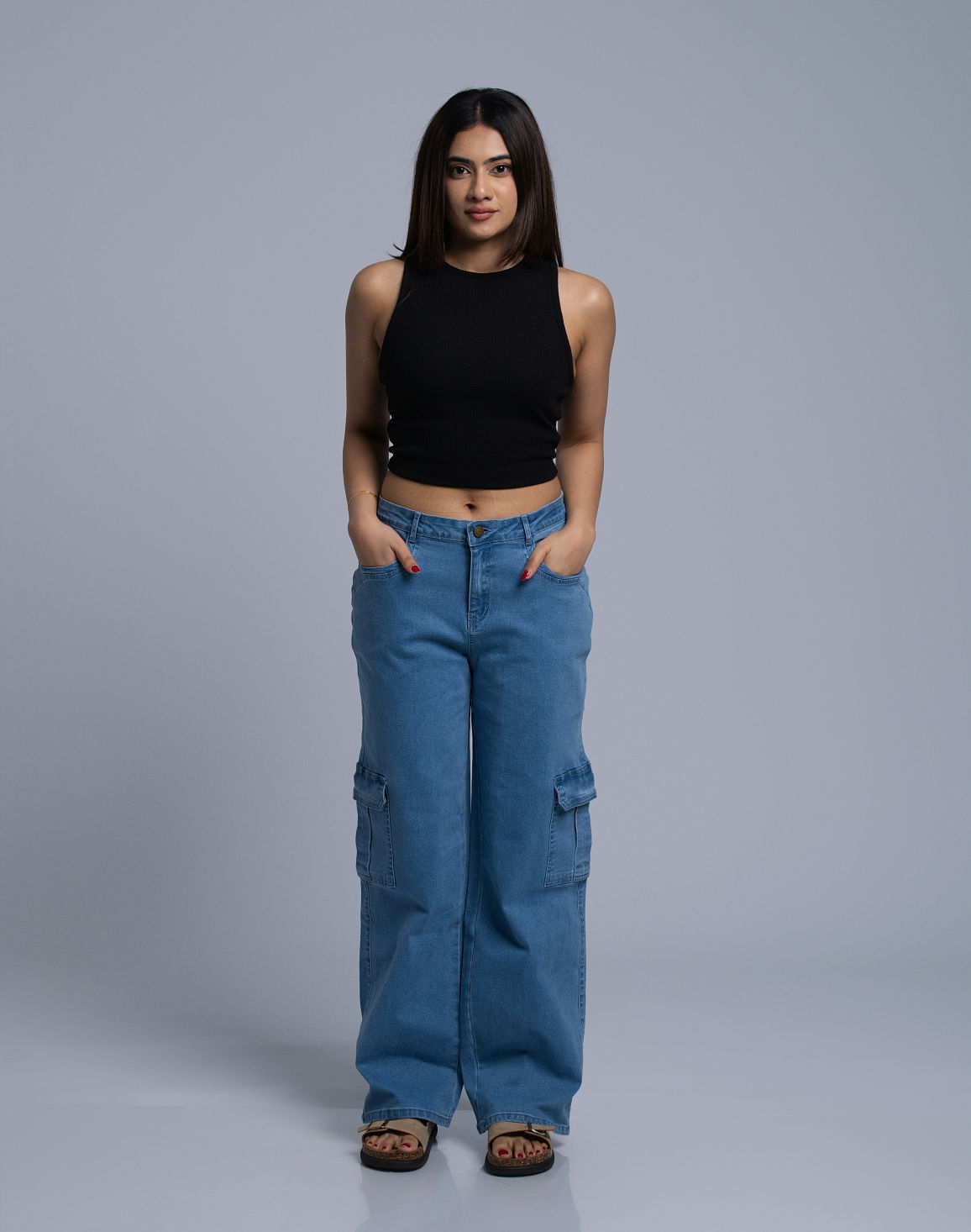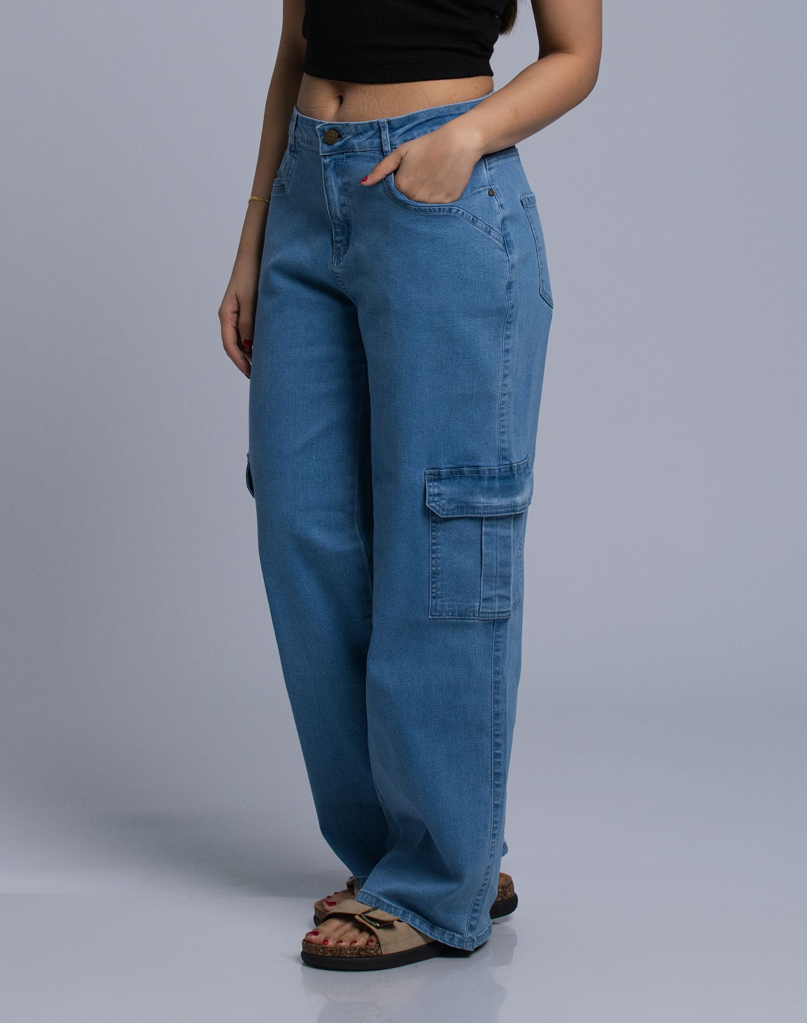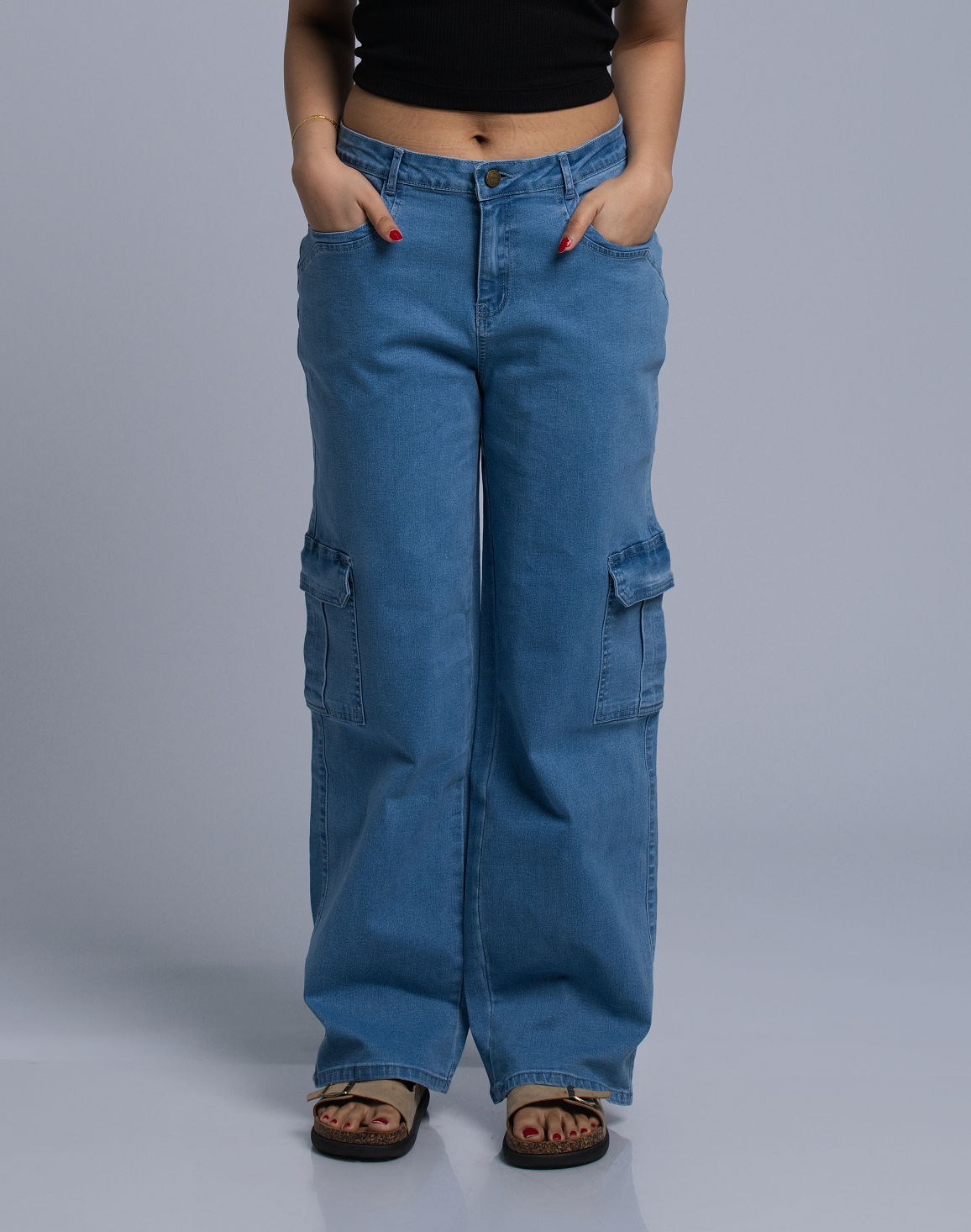 HUF & DEE Women's Mid Waist Cargo Jeans Sky Blue