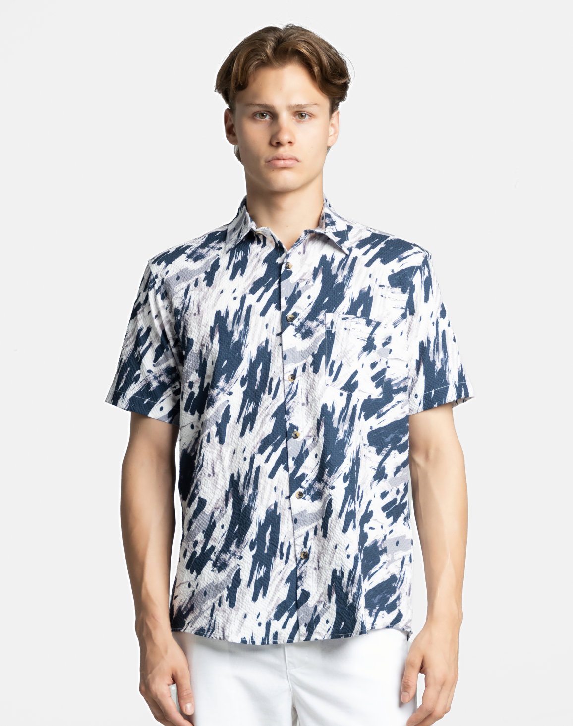NOLIMIT Men's Regular Fit Printed Popcorn Casual Shirt