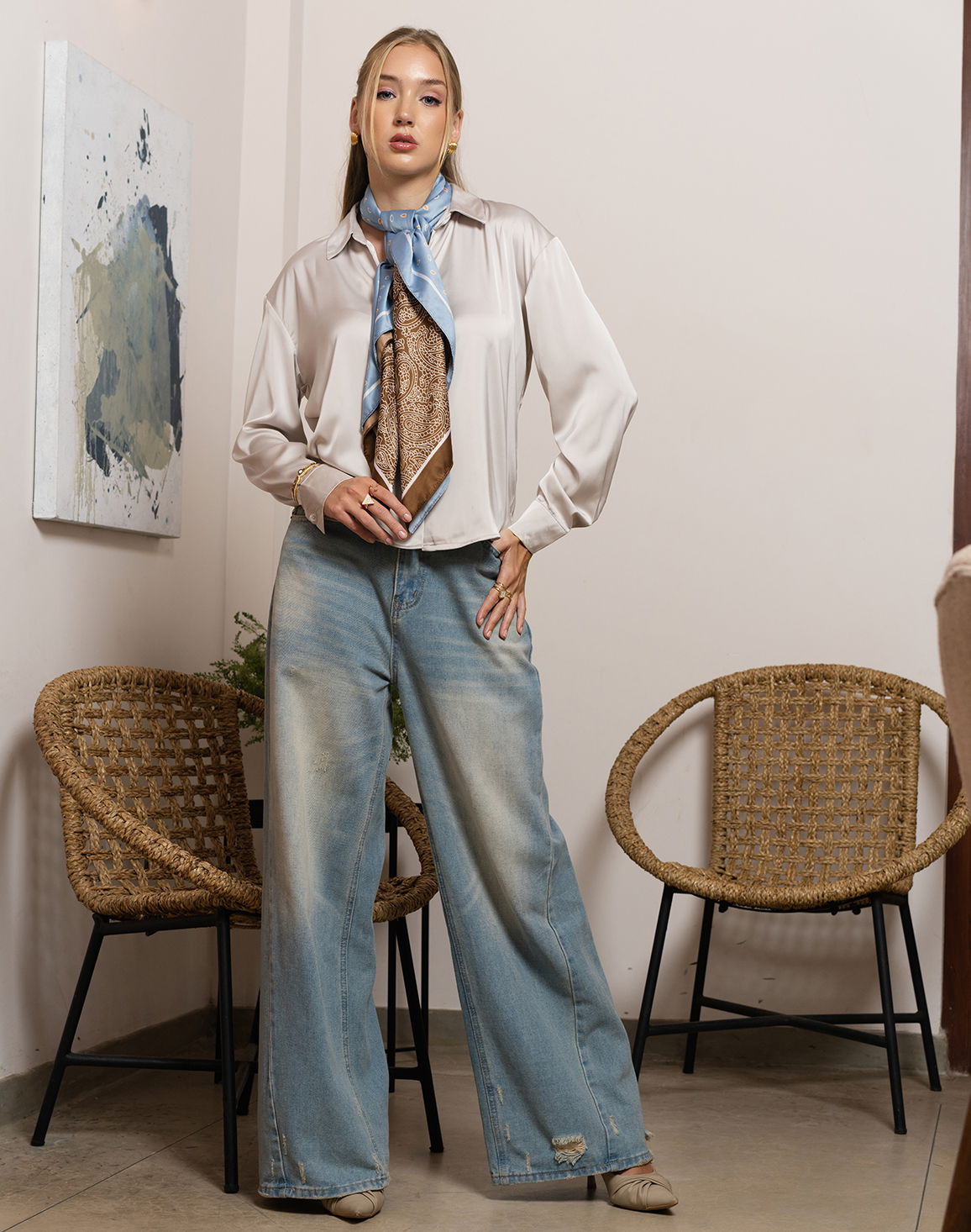NOLIMIT OFF BEAT IMPRESSIONS Women's Printed Shirt Collar Casual Blouse Gray