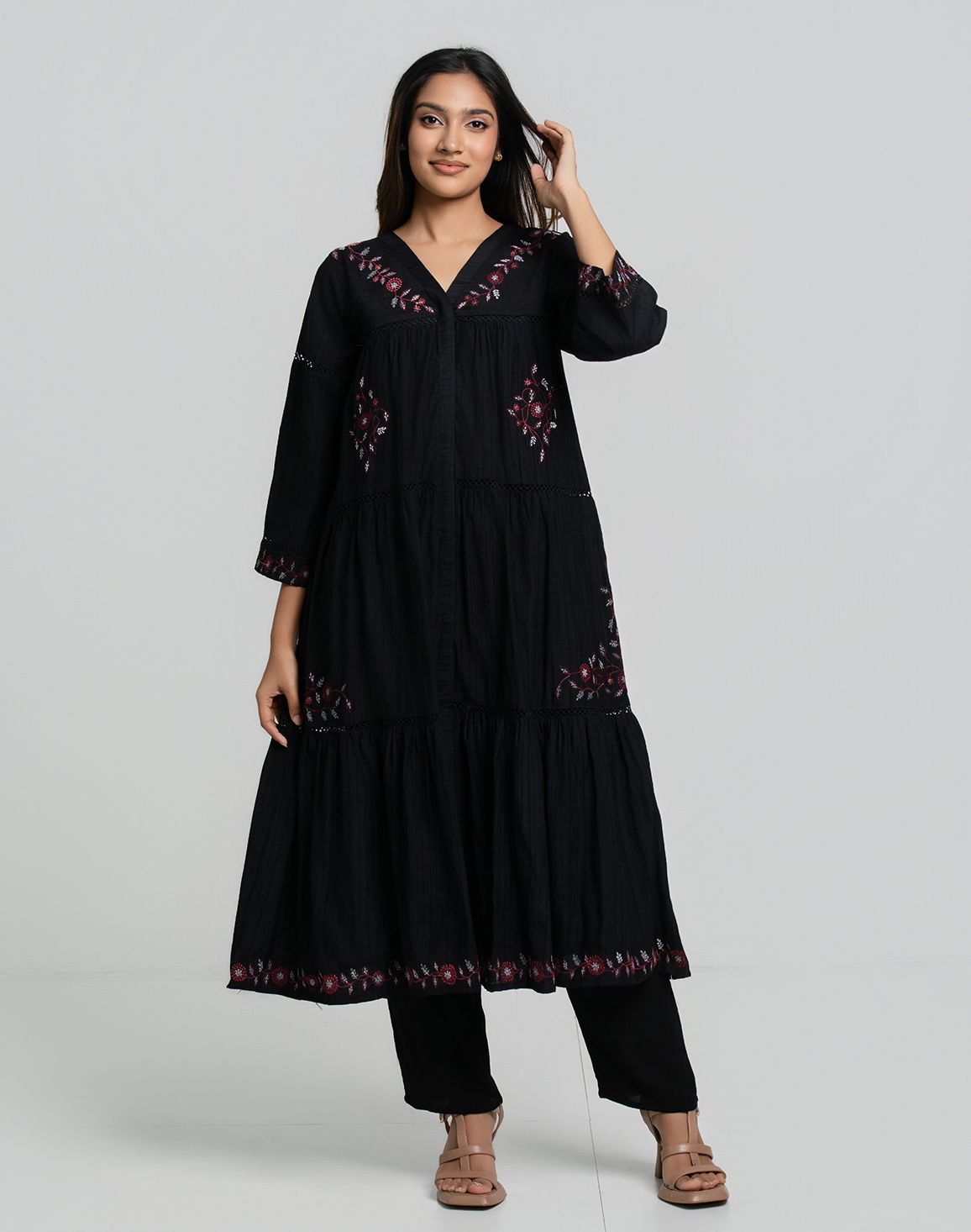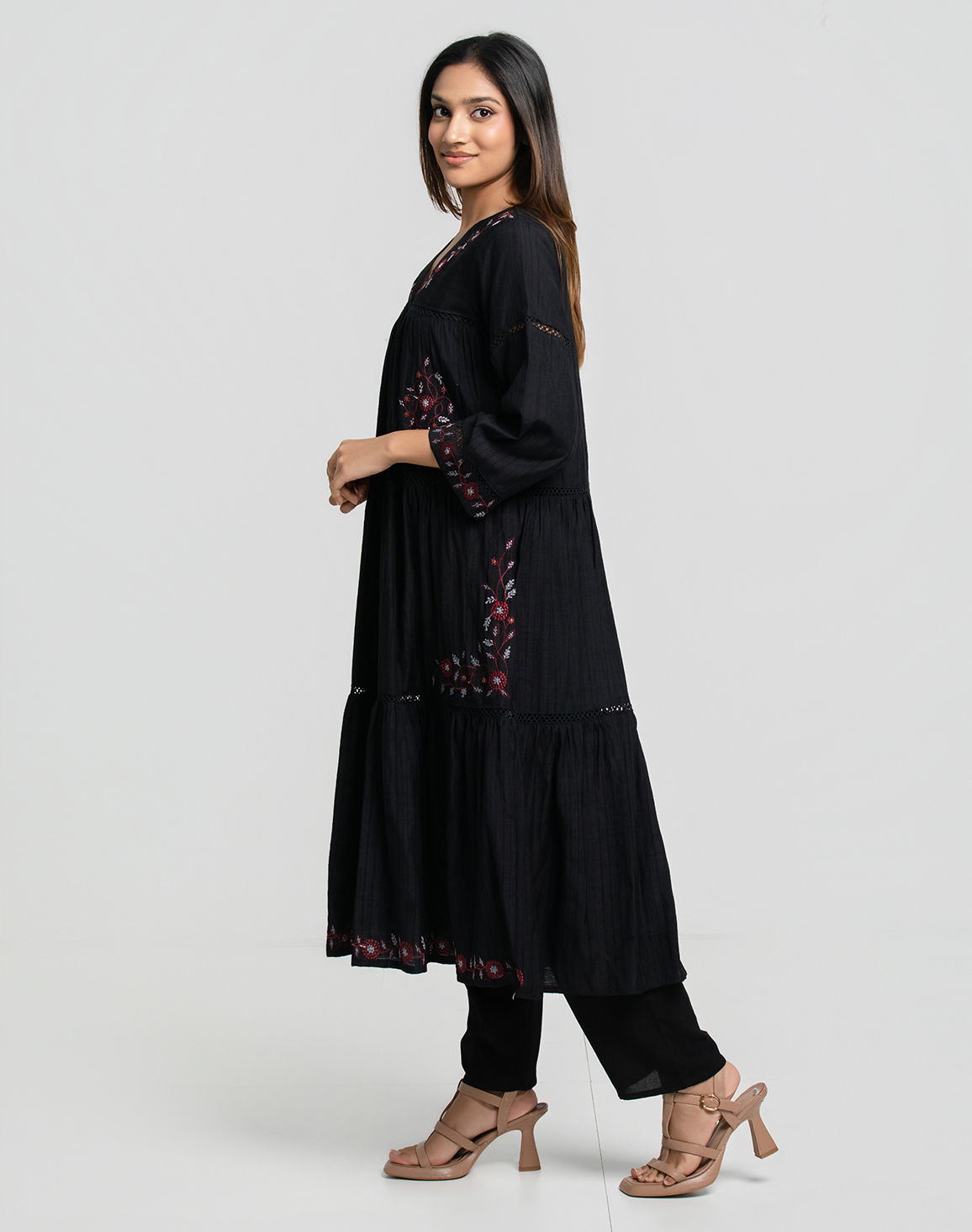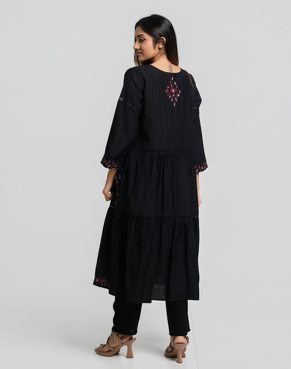NOLIMIT Women's Thread Work Printed Kurta Black