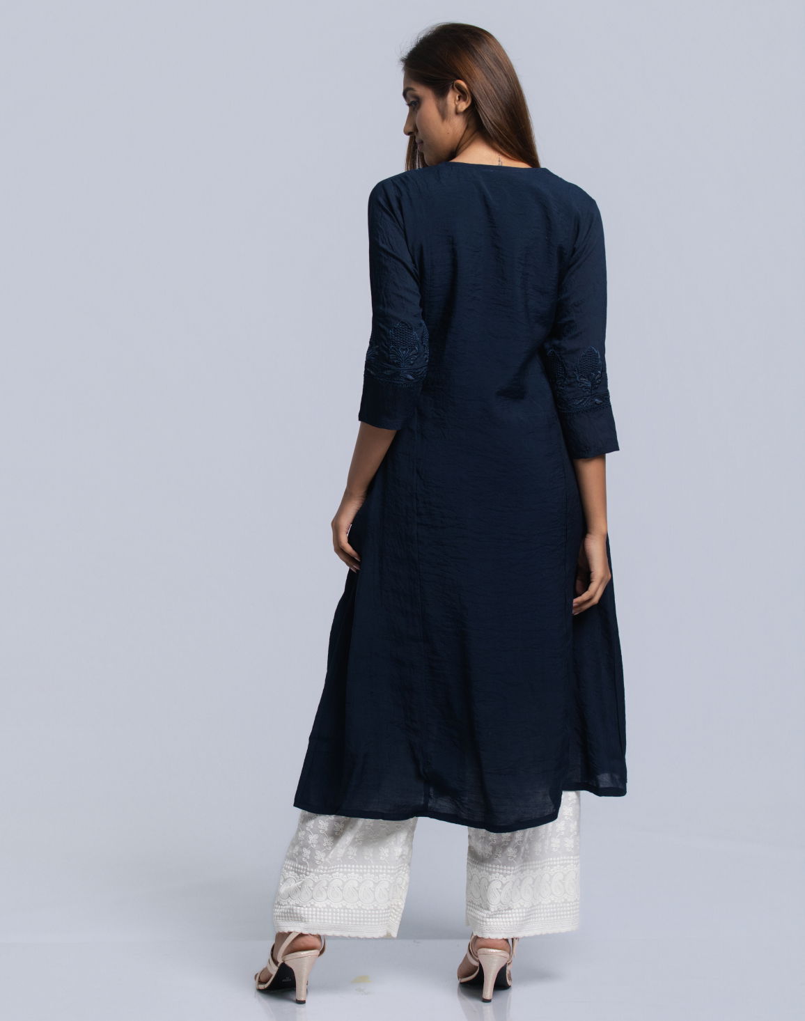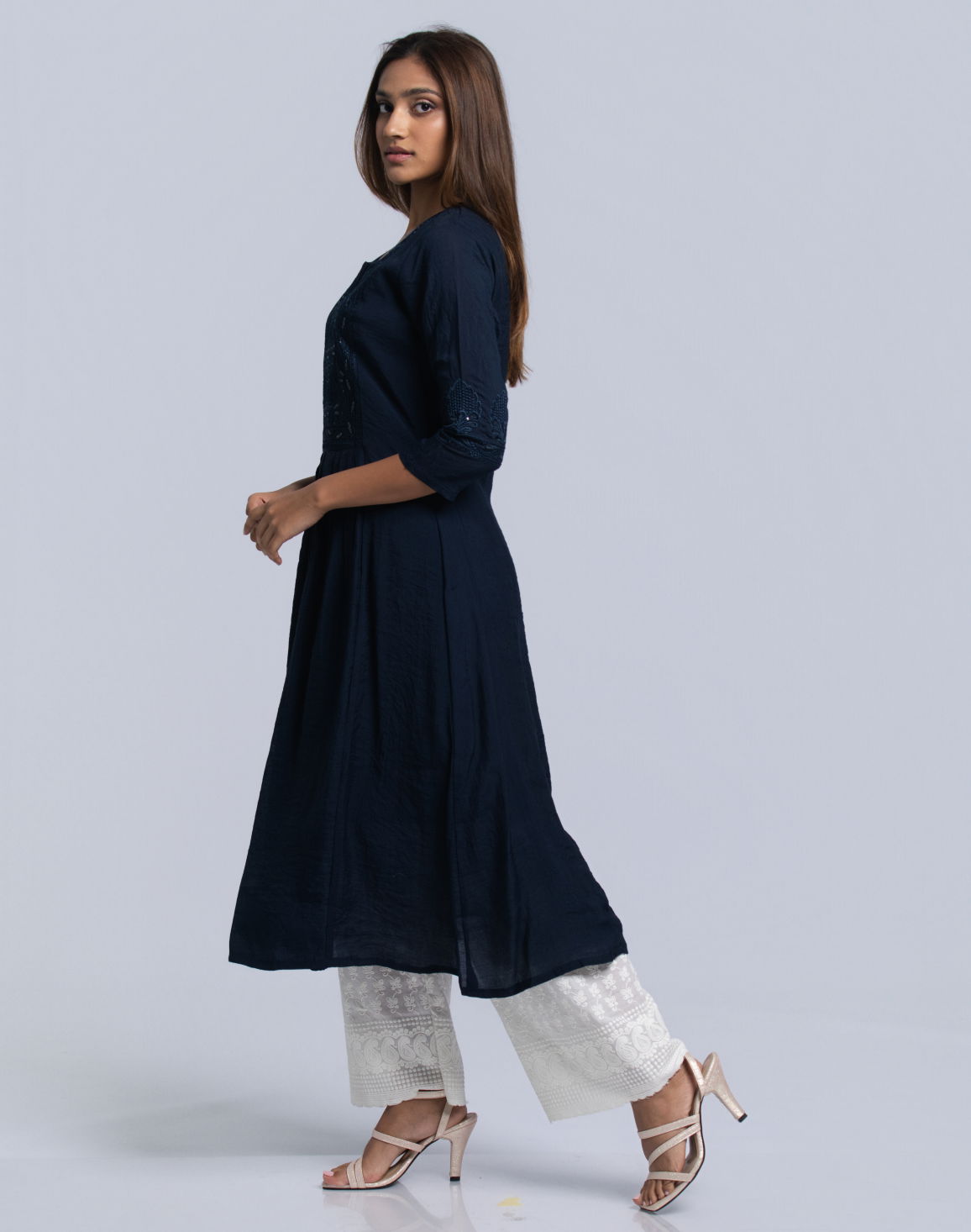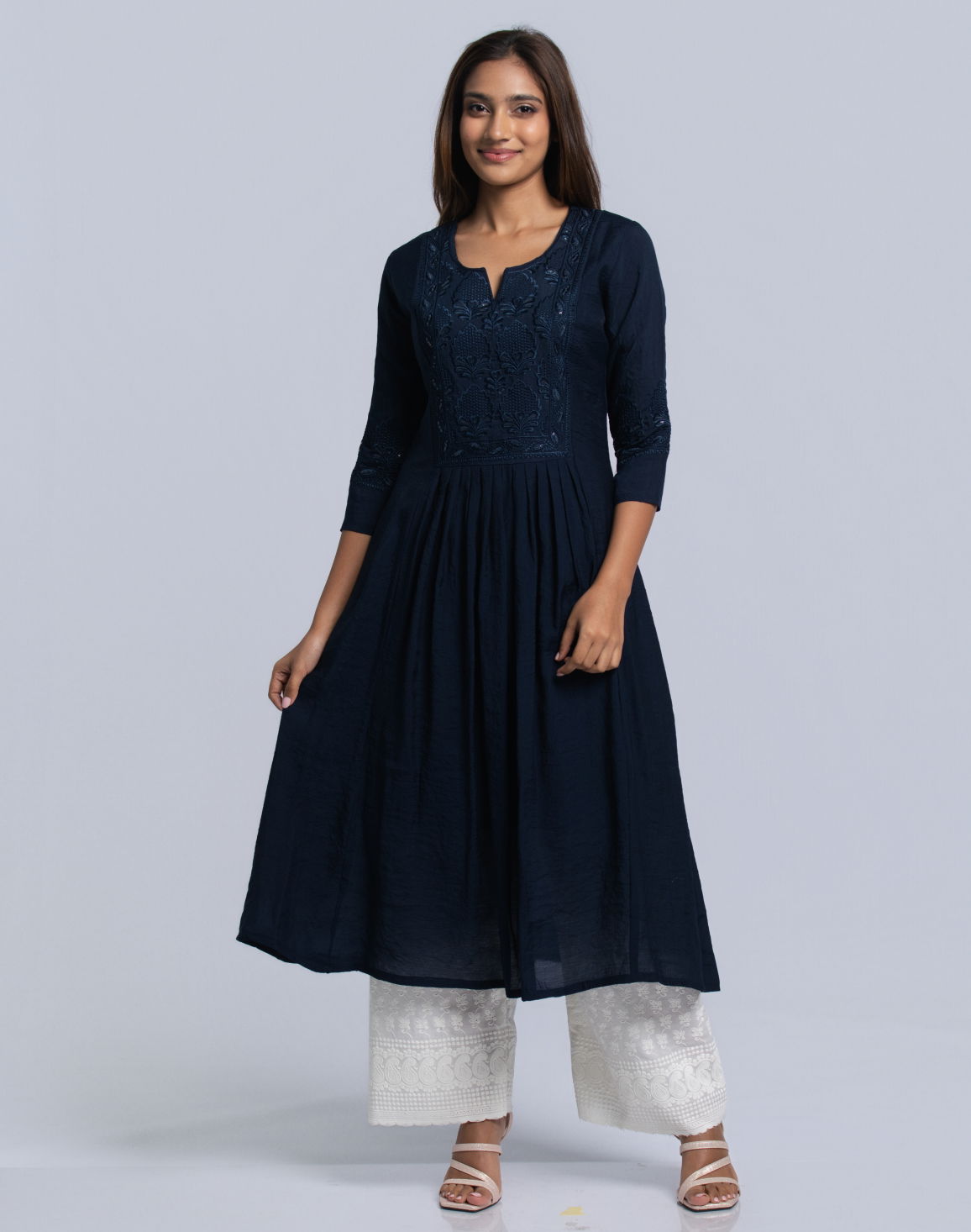 Women's Notch Neck Frock Style Kurta Navy